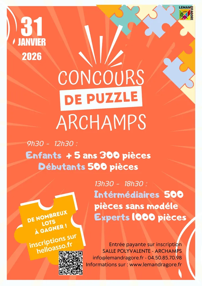Nouveau : la ludothèque d'Archamps organise un concours de puzzle le 31 janvier 2026 ( affiche, règlement, inscription )
